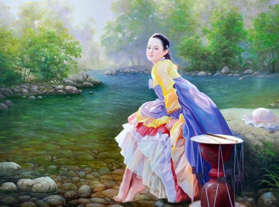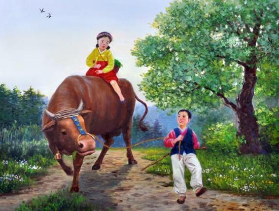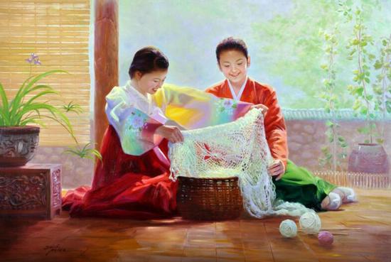朝鲜的油画有时并不像人们想像的那样古板,有的画作在传统画法的基础上也突破了一些陈规。