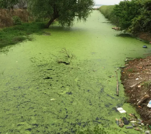 水污染现场,2015年7月 洞庭湖腹地湖南省安乡县安丰乡出口洲社区房前屋后水网密布,但水污染严重水体发臭 新华社记者周楠摄