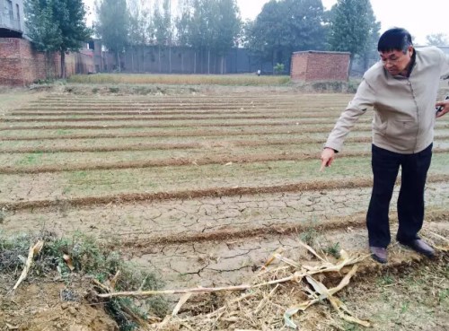 “2006年地面沉降,地上出现了一条1米宽、8公里长的巨大裂缝,农民每年填每年裂,浇地的时候用塑料布盖上,但是一下雨地面又塌了。我们村420户人家,20多户房屋都有裂缝。”河北省邢台市柏乡县西汪镇寨里西村党支部书记杨胜春说。