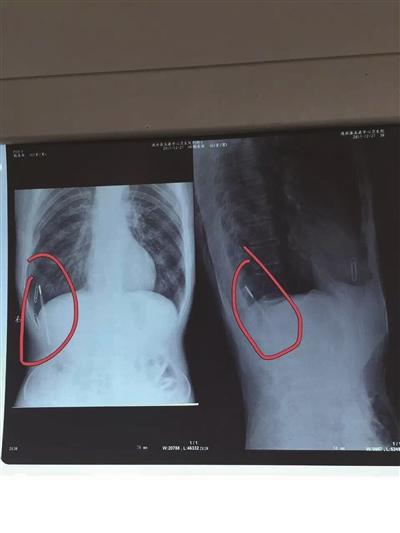 家住淮安市涟水县红窑镇的嵇老汉告诉医生,几年前在外地打工,不幸发生工伤事故,之后由老板送进附近医院做植皮,伤好以后就回了家乡,其间再没有外出,也没有因为什么病痛住过医院,前不久,因为一件小事受伤,到涟水县人民医院检查,在检查报告单上明显看到体内有异物。