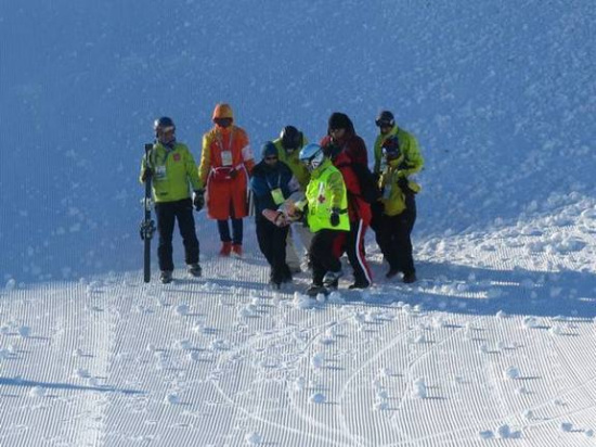 新华社乌鲁木齐1月21日电 索契冬奥会自由式滑雪女子空中技巧亚军、8号徐梦桃在第十三届全国冬季运动会自由式滑雪空中技巧女子个人决赛落地时意外摔伤,急救人员已入场将其抬走,希望这位国家队主力伤情无碍!新华社记者杜刚拍摄