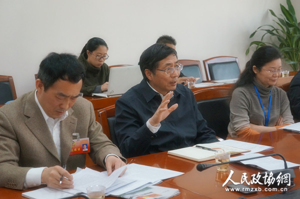 1月18日,在厦门市政协十二届五次会议的致公、侨联界别的联合小组讨论会上,杨行健委员(左一)从研究的角度,建议打通侨台工作的交流渠道,听到更真实的“好声音”。