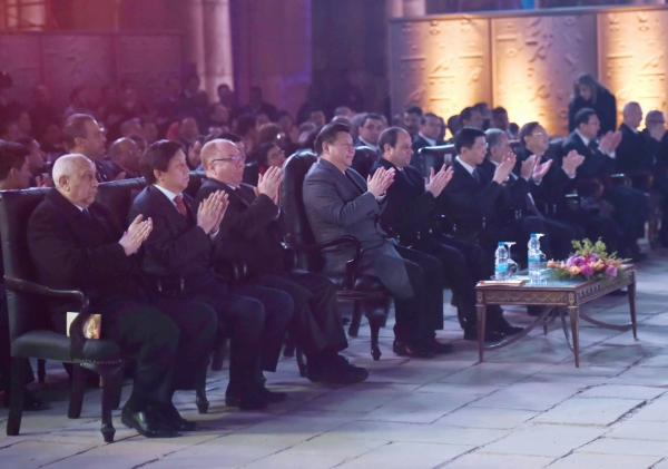 习近平和塞西同中埃各界人士200多人共同观看了由中埃演职人员联袂献上的《两个伟大文明对话》主题演出。