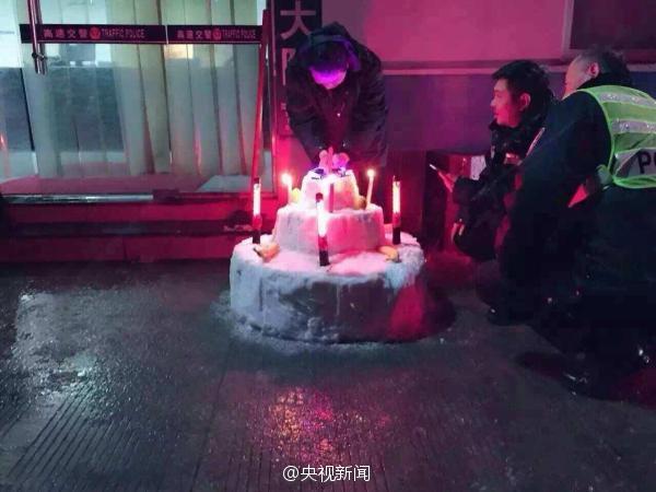 关键词:雪蛋糕 浙江雪中执勤交警 雪蛋糕庆生