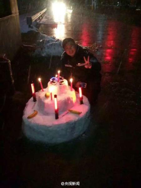 独特的雪中庆生,“生日蛋糕”只能看不能吃。 央视记者 李欣蔓