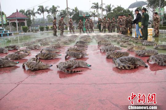 广西边防查获70条野生暹罗鳄 另有暹罗鳄尾巴88条
