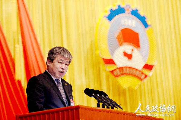 北京市政协全会举行第一场大会发言。张斌委员在大会上就完善首都互联网金融监管体系发言。田福良 摄