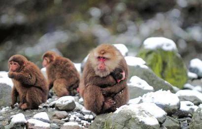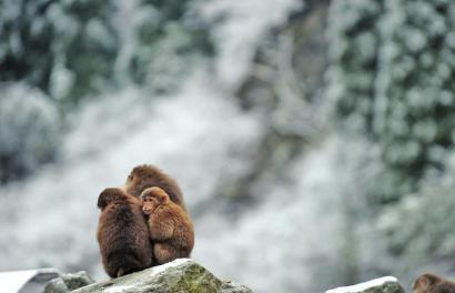 四川遇寒潮 猴子一家子抱团取暖(图)