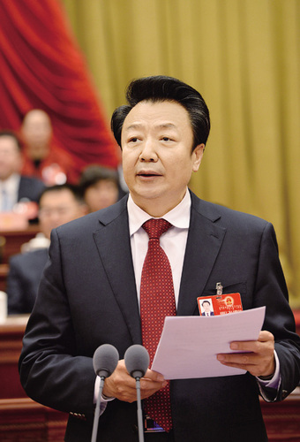自治区主席巴特尔代表自治区政府向大会作政府工作报告。记者 袁永红