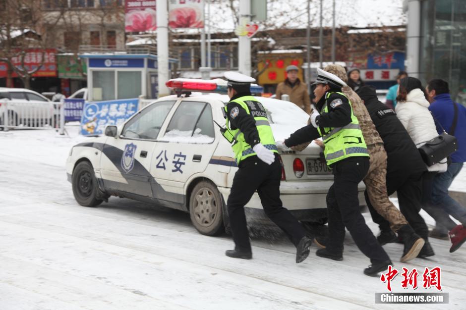 关键词:警车送产妇 遇凌冻天气 警民齐力推车