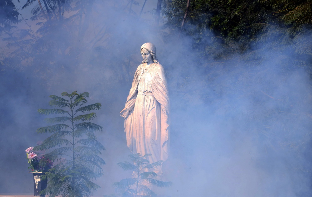 1月21日,在洪都拉斯首都特古西加尔巴的一处公墓,灭蚊药剂弥漫其间。