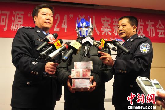 举报人戴着变形金刚面具领赏 陈骥旻 摄