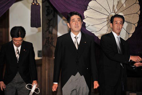 据了解,安倍在第二次上台迎来一年的2013年12月参拜了靖国神社,现任首相的参拜还要追溯到约七年前的时任首相小泉纯一郎。安倍当时乘坐公务车前往靖国神社,以“内阁总理大臣 安倍晋三”的名义供花。