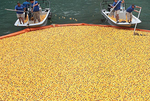 芝加哥“小黄鸭”慈善竞赛 6万只黄鸭“跳”入河中