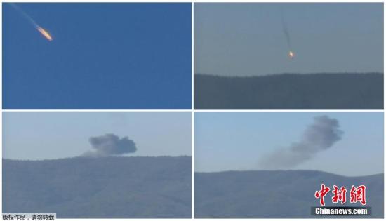 当地时间11月24日,一架俄罗斯苏-24战机在叙土边境坠毁。