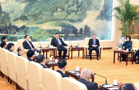 1月29日,习近平、俞正声、张高丽等在北京人民大会堂同党外人士欢聚一堂,共迎新春。