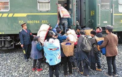 带着鸡鸭鹅前来乘车的当地群众,铁路是当地人唯一的便捷交通方式。