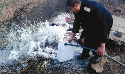 寒潮来临,火车站的水管被冻住后不出水了,车站工作人员王志刚在1公里外的老乡家里找到了生活用水。