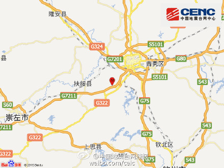 中新网2月1日电 据中国地震台网正式测定:2月1日9时28分在广西南宁市江南区(北纬22.64度,东经108.15度)发生3.2级地震,震源深度6千米。
