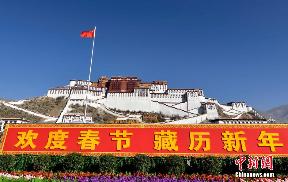 随着农历猴年春节和藏历火猴新年即将到来,布达拉宫广场及拉萨街头装饰一新,充满节日喜庆气氛。李林 摄