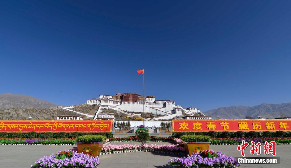 随着农历猴年春节和藏历火猴新年即将到来,布达拉宫广场及拉萨街头装饰一新,充满节日喜庆气氛。李林 摄