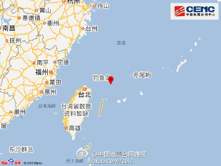 台湾发生6.2级近海地震 震中在钓鱼岛附近