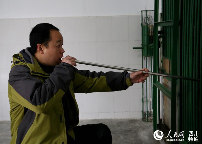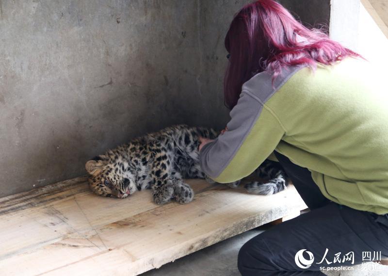 据了解,成都动物园老豹房的设备设施太过陈旧,为改善动物生活环境,进行环境丰容,动物园工作人员对豹房进行了重装。工作人员称,此次共有19只豹子搬进新家,目前,搬进新家的豹子们身体状况良好。图为正在接受身体检查的豹子摆出了吐舌瞪眼的表情,乐坏了在场的记者。 周栩如 摄 图片来源:人民网