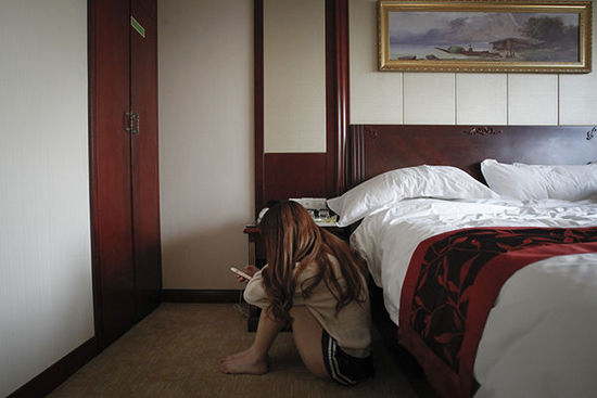 2016年1月15日,上海,网络主播经纪人正在拍摄期间休息。