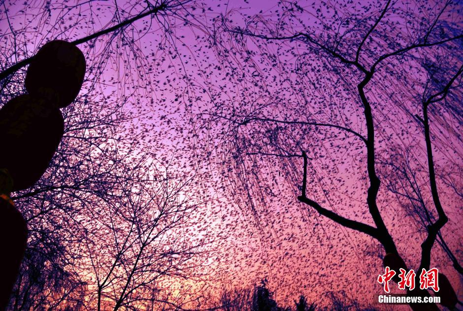 2月2日,山东省济南市,在趵突泉景区上空,数万只各种鸟类在天空中盘旋,鸟群飞过产生的“哨音”超过大型交响乐团的演奏声音,并且飞走一群,又来一帮,“哨音”此起彼伏,在泉城上空回荡。其种群之大、数量之多,均是多年难得一见,被当地市民称为“万鸟朝阳”。 高东风 摄 图片来源:视觉中国
