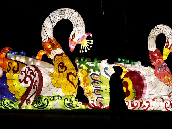 2月3日,在英国伦敦奇西克庄园,参观者在中国彩灯节期间走过一处彩灯装置。为庆祝农历新年,中国彩灯节于2月3日至3月6日在伦敦举行。新华社/路透