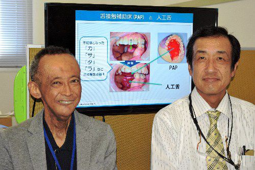 日本研究小组利用用于牙科治疗的树脂,根据患者牙齿和口腔的形状,制成大小合适的人工舌头。然后用铁丝将其连接在患者槽牙上,通过残留的舌根使其上下活动接触上腭。另外,还会使用名为PAP的填充物填充增加上腭厚度,使人工舌头更易接触上腭。