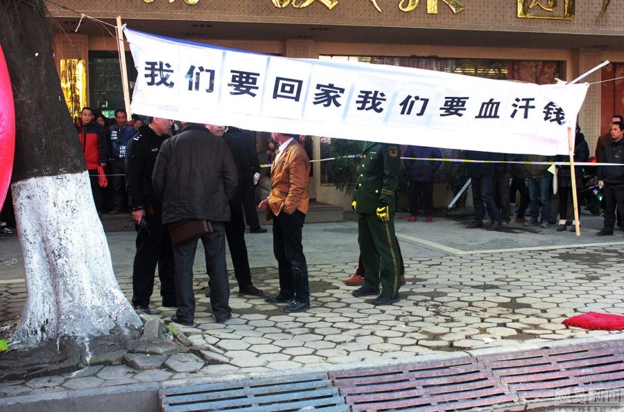 昨天下午4点多钟,记者去到了将军路和环城西一路交叉的路口位置,看见一名中年男子正爬在一棵大树上放声大哭,男子所处的位置距离地面有10米多高。当时,2米多高的救生气垫已经铺在了树下,树下已经围有近百位市民,消防、民警也在现场处置。而记者同时也注意到,气垫上已经躺着一名男子。图为两男子“跳树”讨薪现场。