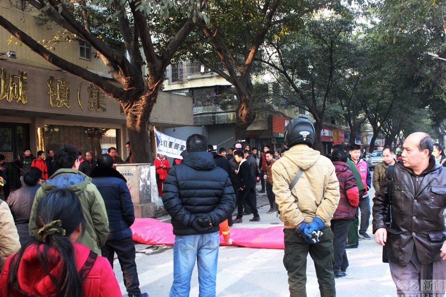 “姓赖的老总本来答应今天(2日)结工资款,我们来了之后发现他人根本不在这里,电话也不接了?!被葡壬?,他们为工资的事找了赖总多次,每次都是在“国际小城镇集团筹建中心”的赖总办公室谈。知道赖总就在那里办公,他们实在没办法才爬上集团门口的大树要钱的。图为两男子“跳树”讨薪现场。