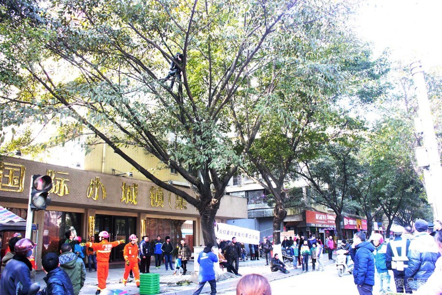 关键词:跳树讨薪 爬上10米高树
