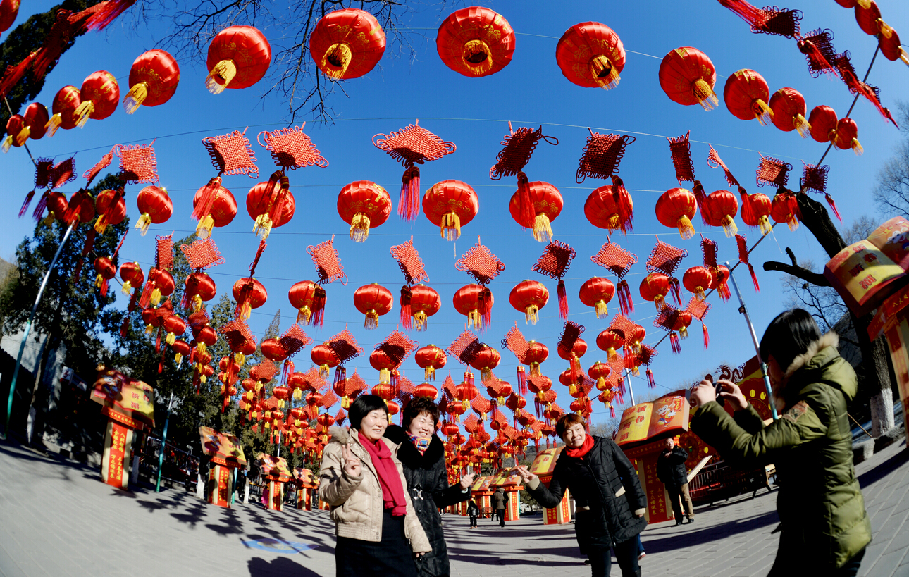 节日临近,北京八大处公园里张灯结彩,喜迎佳节。