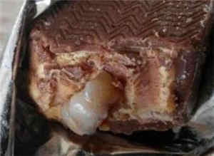 【士力架吃出烂牙】近日,武汉一名女子徐某帮儿子买了块士力架,谁知孩子在吃的过程中竟然吃到了一颗牙,还是一颗烂牙。真是恶心至极,所幸孩子没有吃下去,不然后果不堪设想。据了解,小区门口,儿子喊饿徐女士就小区门边的一家小超市买了块士力架巧克力给儿子。出了超市门儿子就开始吃,可吃着吃着儿子就说咬不动了,她起先以为是孩子咬不动巧克力里的花生仁,可仔细一看才发现,巧克力里竟然有颗牙齿。