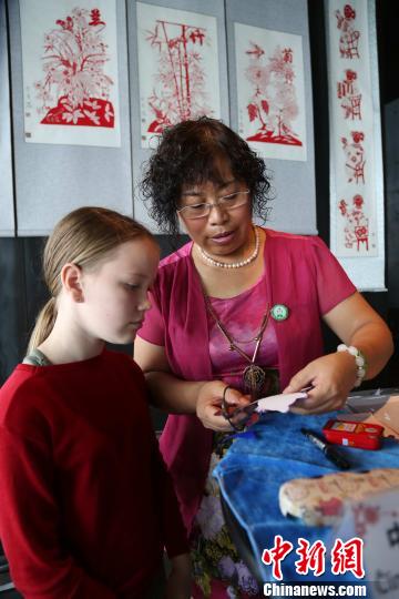 (资料图)2013年7月21日,齐秀花随山东省民间文化代表团访问冰岛向当地民众展示山东传统绝活剪纸艺术?!∏窠?摄