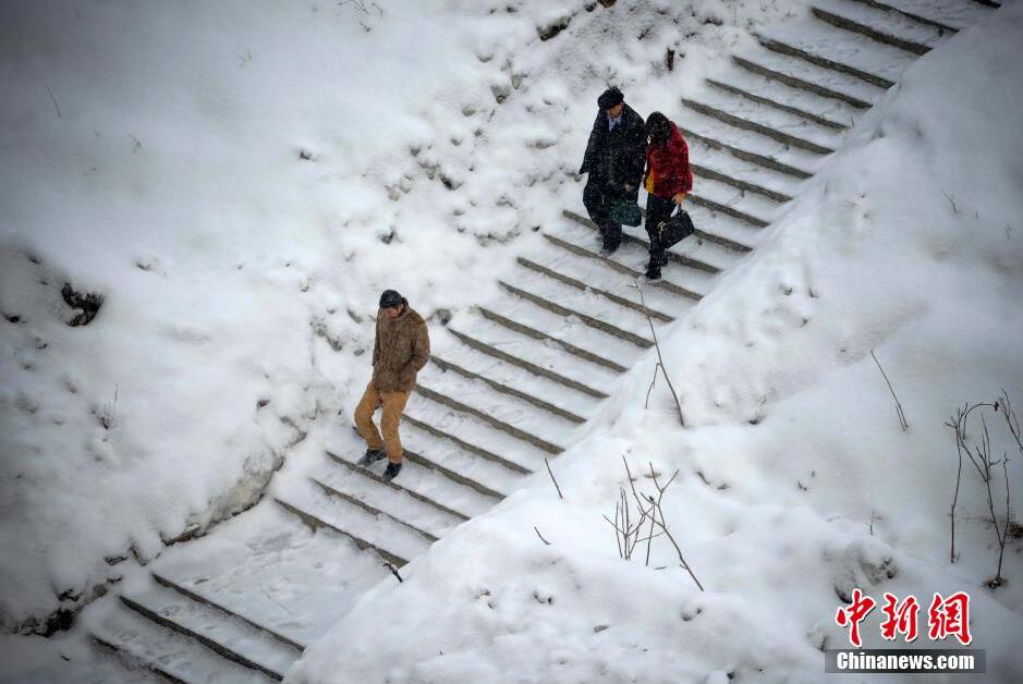2月10日,新疆乌鲁木齐市迎来农历猴年首场降雪天气,纷纷扬扬的大雪将整个城市装扮成白色世界,而飘舞的大雪也未能阻止民众外出走亲访友的热情。 中新社记者 刘新 摄
