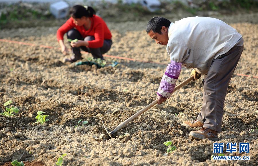 2月10日,广西河池市凤山县乔音乡客里村农民在种南瓜。春节期间,各地农民抓住晴好天气犁田松土,为新一年的春耕、春种作准备。 新华社发(周恩革 摄)