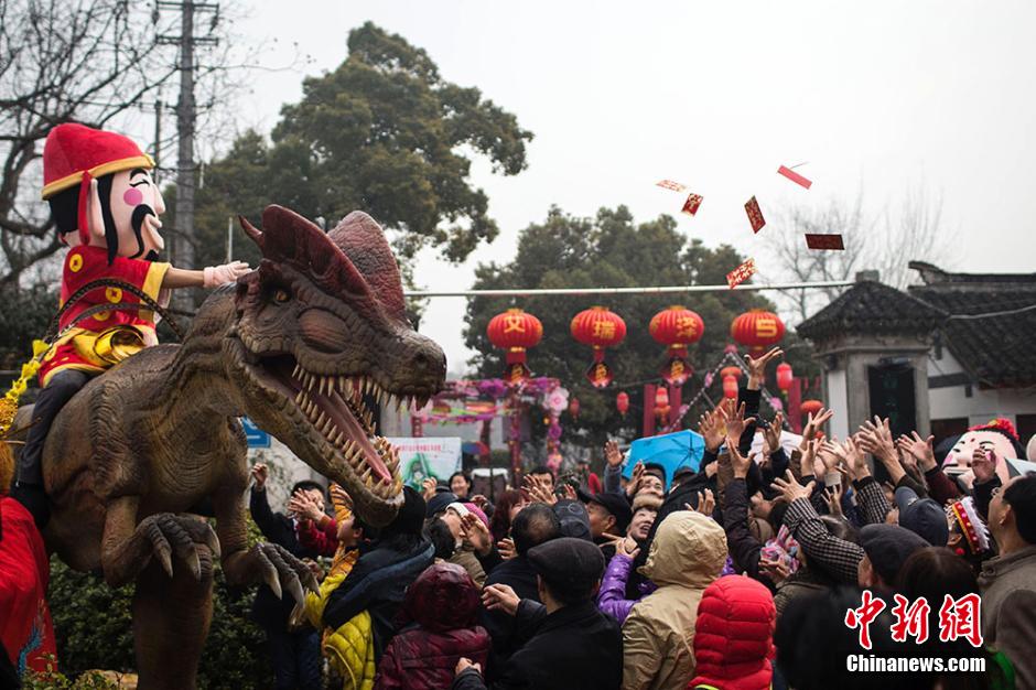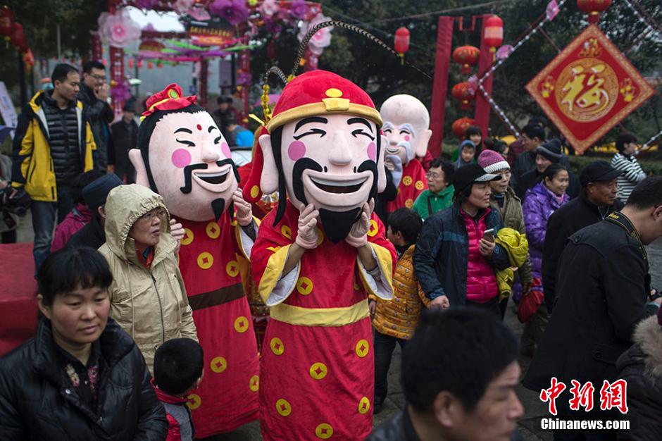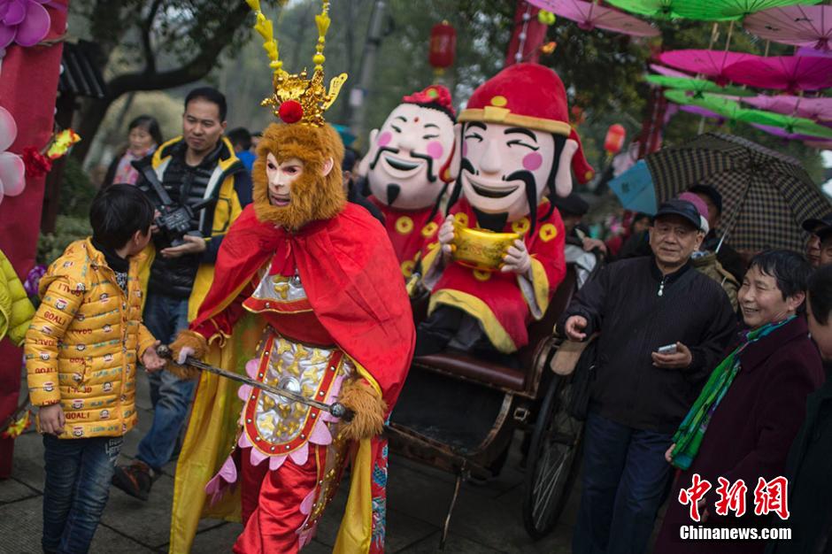 2月12日,“财神爷”乘坐着“齐天大圣”拉载的黄包车现身南京白鹭洲公园,沿途向民众发放现金红包。当日是农历正月初五,民间素有迎财神的习俗。 泱波 摄