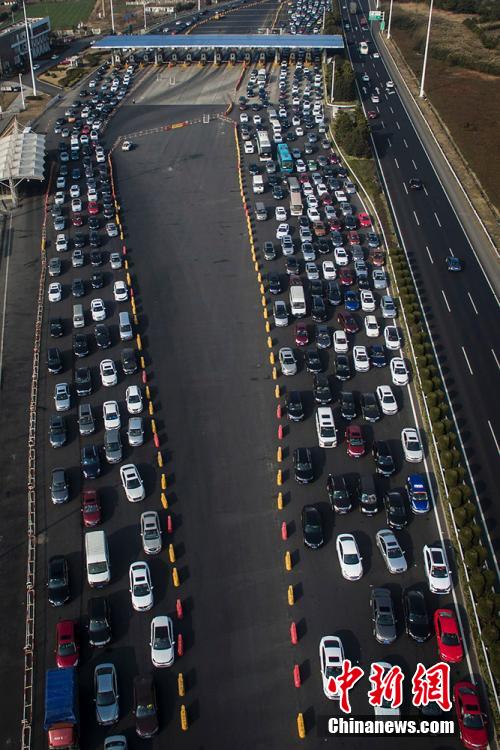 2月11日,行驶在G15高速公路上的大批车辆由北向南缓慢驶上苏通长江大桥。当日是农历正月初四,春节假期已经过半,各地将陆续迎来返程车流高峰。 泱波 摄