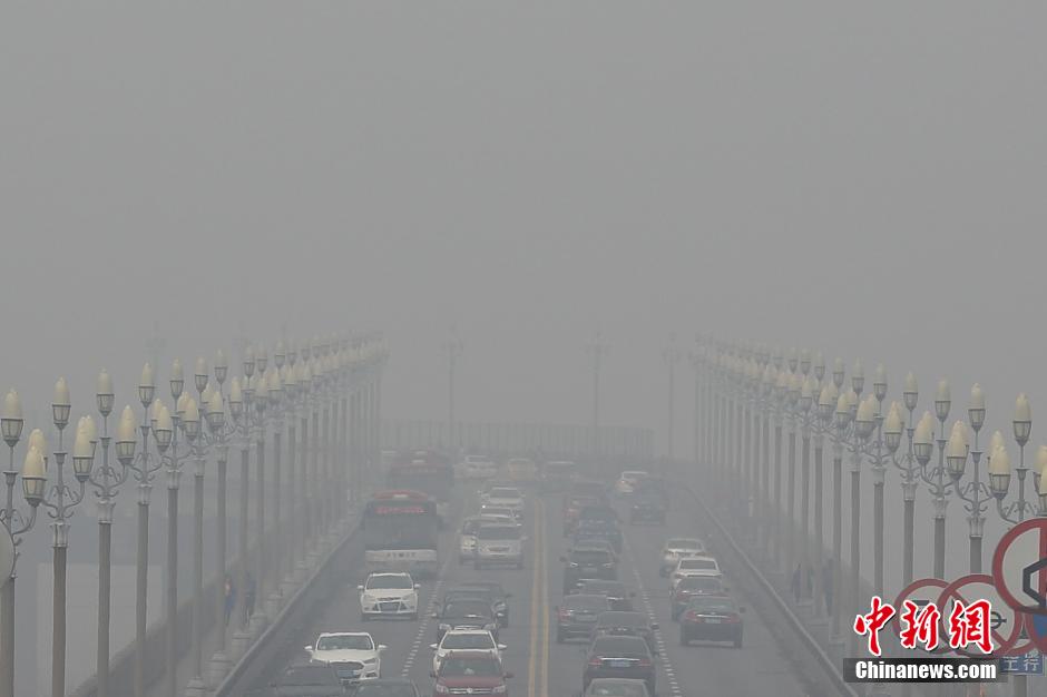 2月12日,车辆在雾气笼罩中的南京长江大桥上经过。当日上午,长三角地区迎来猴年首场大雾,部分高速公路关闭或限行,多趟航班延误,春运立体交通受阻。 中新社记者 泱波 摄