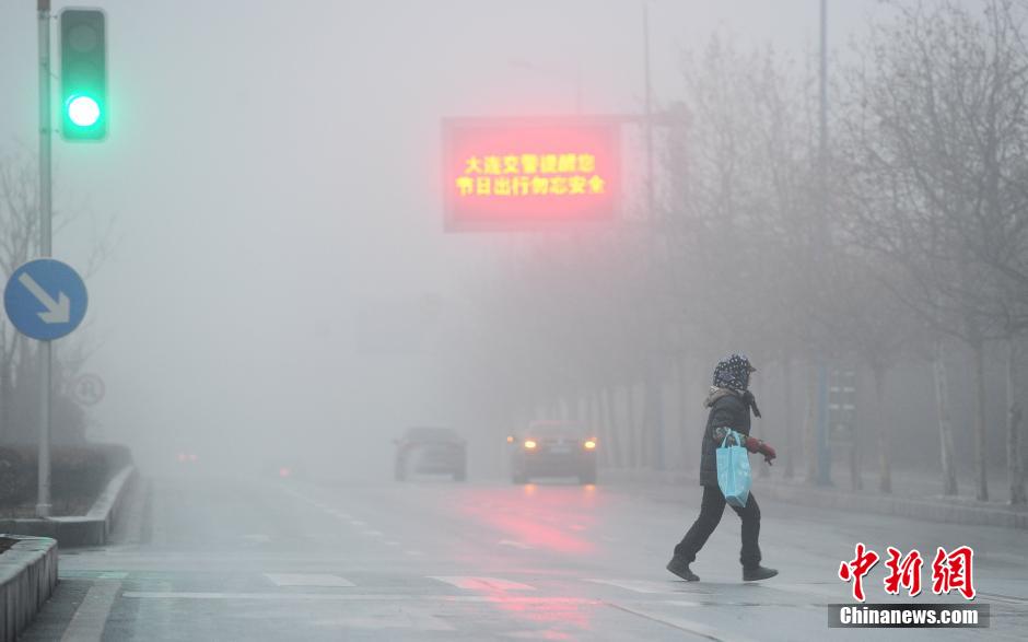 2016年2月12日,辽宁省大连地区及沿海和海面出现能见度小于200米的浓雾天气,大连市气象台发布了猴年首个大雾橙色预警信号。 图片来源:视觉中国