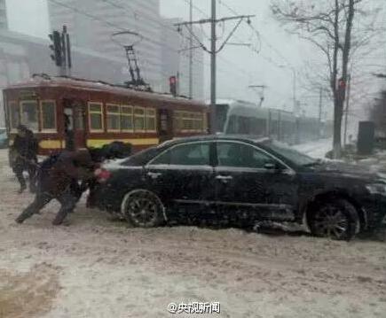 原标题:大连交警雪中推车 因太累马路上跪倒休息