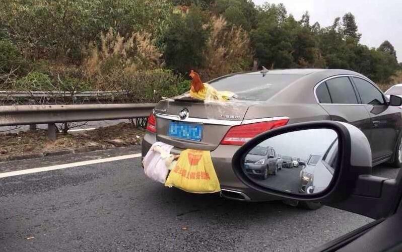 2016年2月13日,一广东号牌上海通用车后备箱,两个蛇皮袋装着鸭子一路往东莞走,可后车盖竟然还用透明胶捆着一只鸡,被网友拍下来迅速传播,微博、微信朋友圈马上沸腾,大伙儿惊呆了,这真的是双涡轮增“鸭”,后置发动“鸡”?