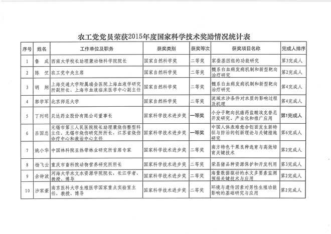 附:《农工党党员荣获2015年度国家科学技术奖励情况统计表》