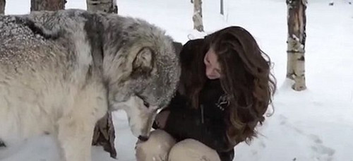 美国女孩与森林狼亲密互动 贴身抚摸亲吻(图)