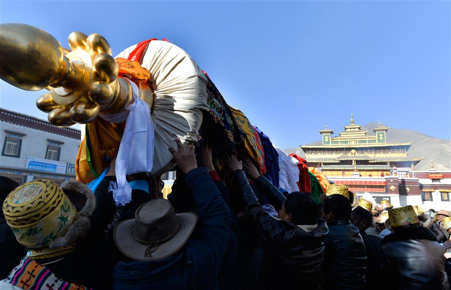 西藏桑耶寺迎来大经杆更换经幡仪式