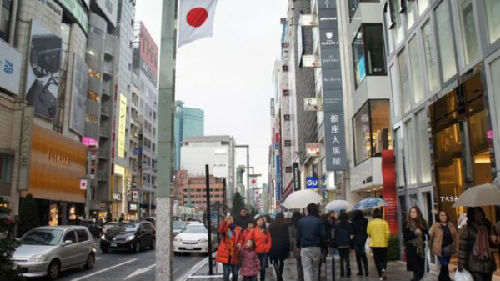 东京繁华商业区银座多了不少看来是自由行的闲游中国游客。(图片来源:英国广播公司网站)