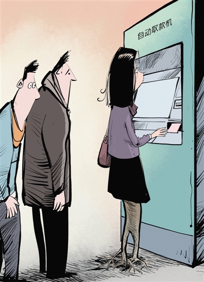 2月13日,安徽淮北市民邢先生取款时遭遇了“奇葩事”,他在农行取钱时,排队的人特别多。一位20岁左右的女孩取款速度慢了些,后面有人催促:“能不能快点?!泵挥邢氲?,这句话让女孩生气了。她开始分次取钱,一次只取100元,就这样取了半个小时,任凭后面几十个人和银行保安怎么劝说依然我行我素。(2月15日《人民网》)漫画/勾犇